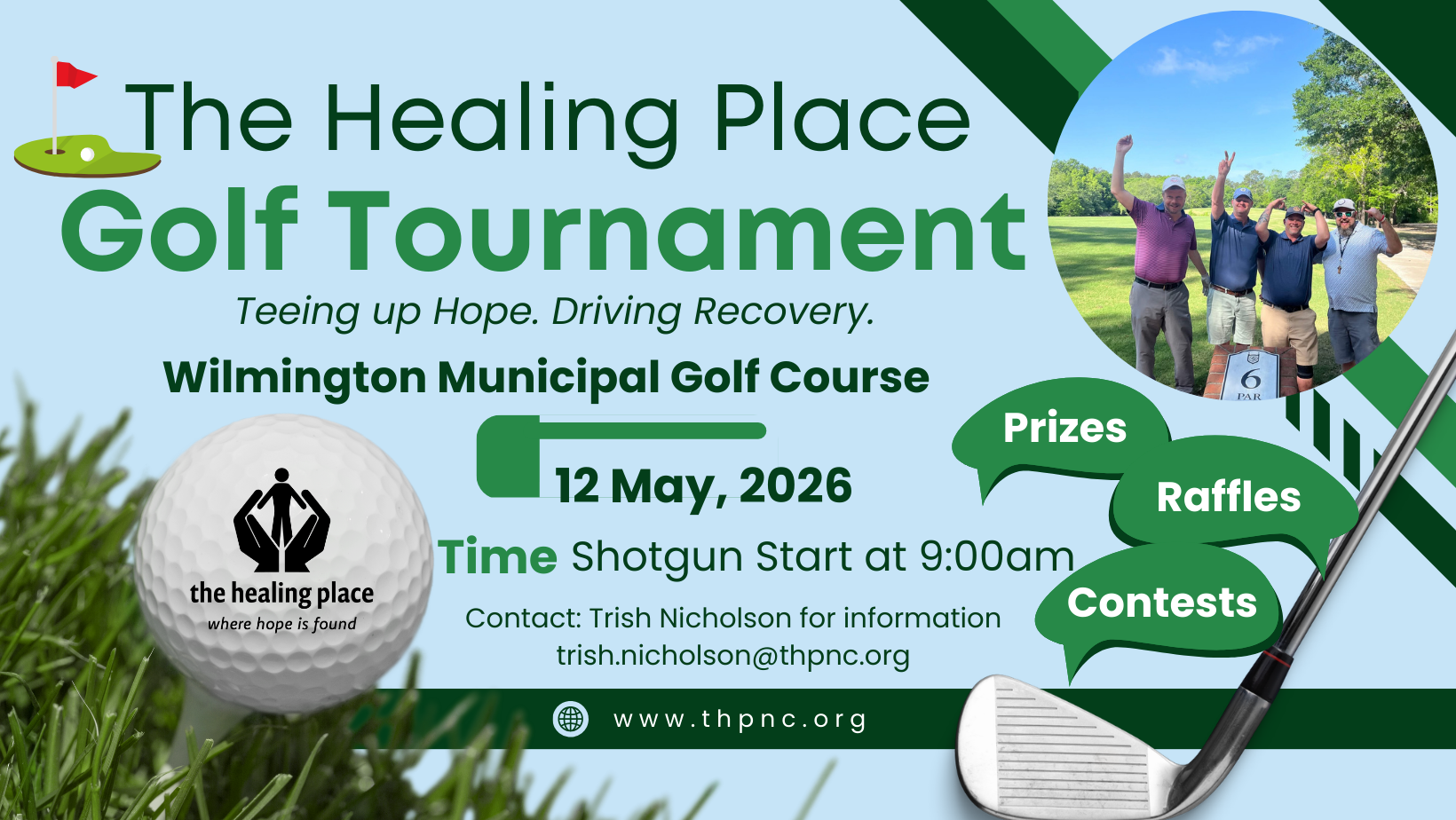 Thank you for supporting The Healing Place of New Hanover County. Your partnership helps individuals rebuild their lives through recovery. Looking forward to seeing you on the course!